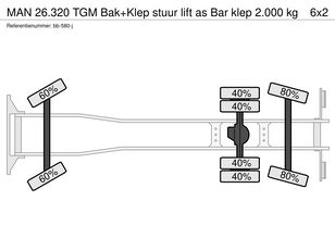 MAN 26.320 TGM Bak+Klep stuur lift as Bar klep 2.000 kg box truck
